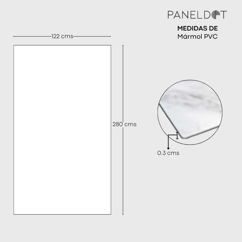 Dimensiones por pieza: 1.22 x 2.80 m