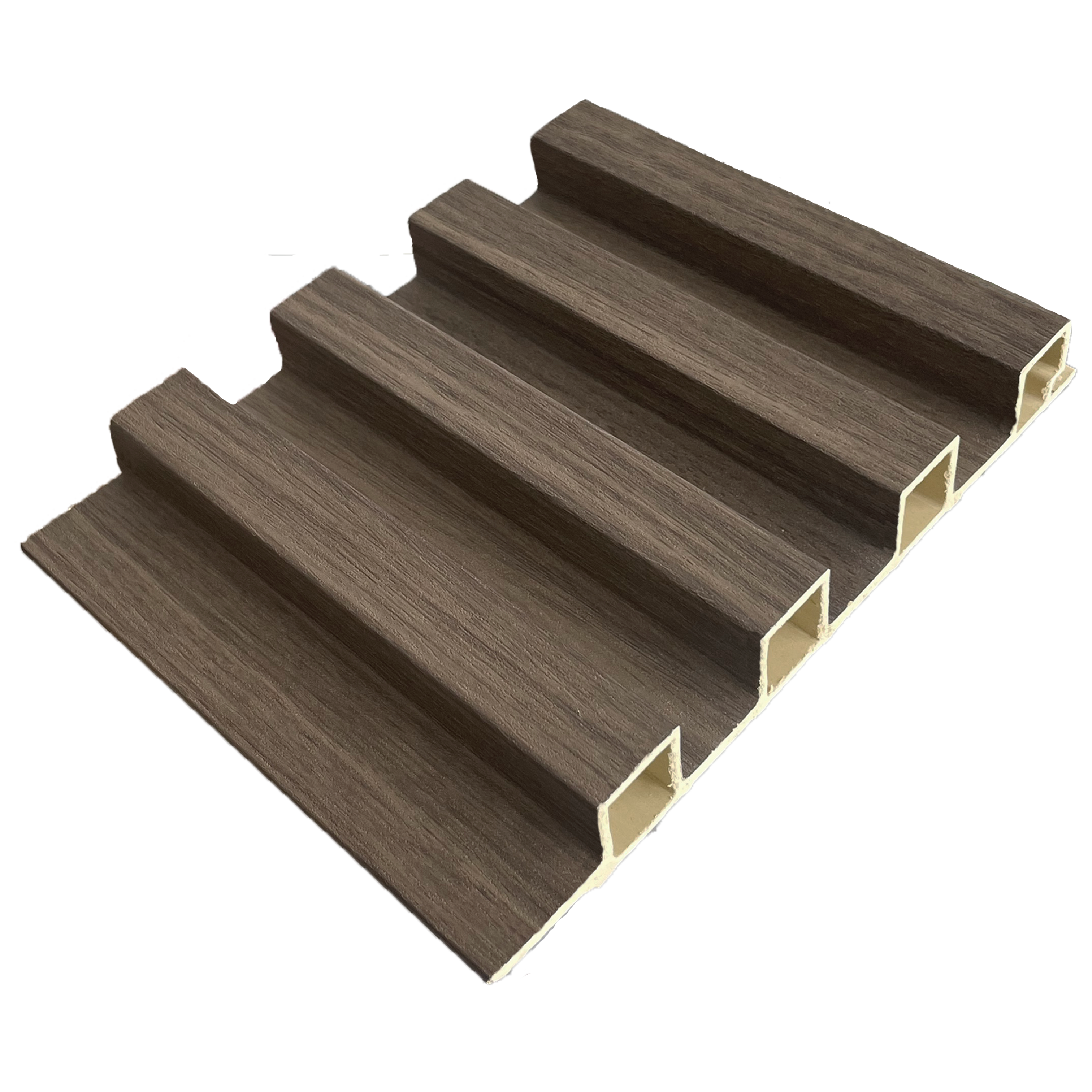 - Material WPC (Wood plastic composite) madera 60% polimeros de plástico reciclados 30%, otros 10%.