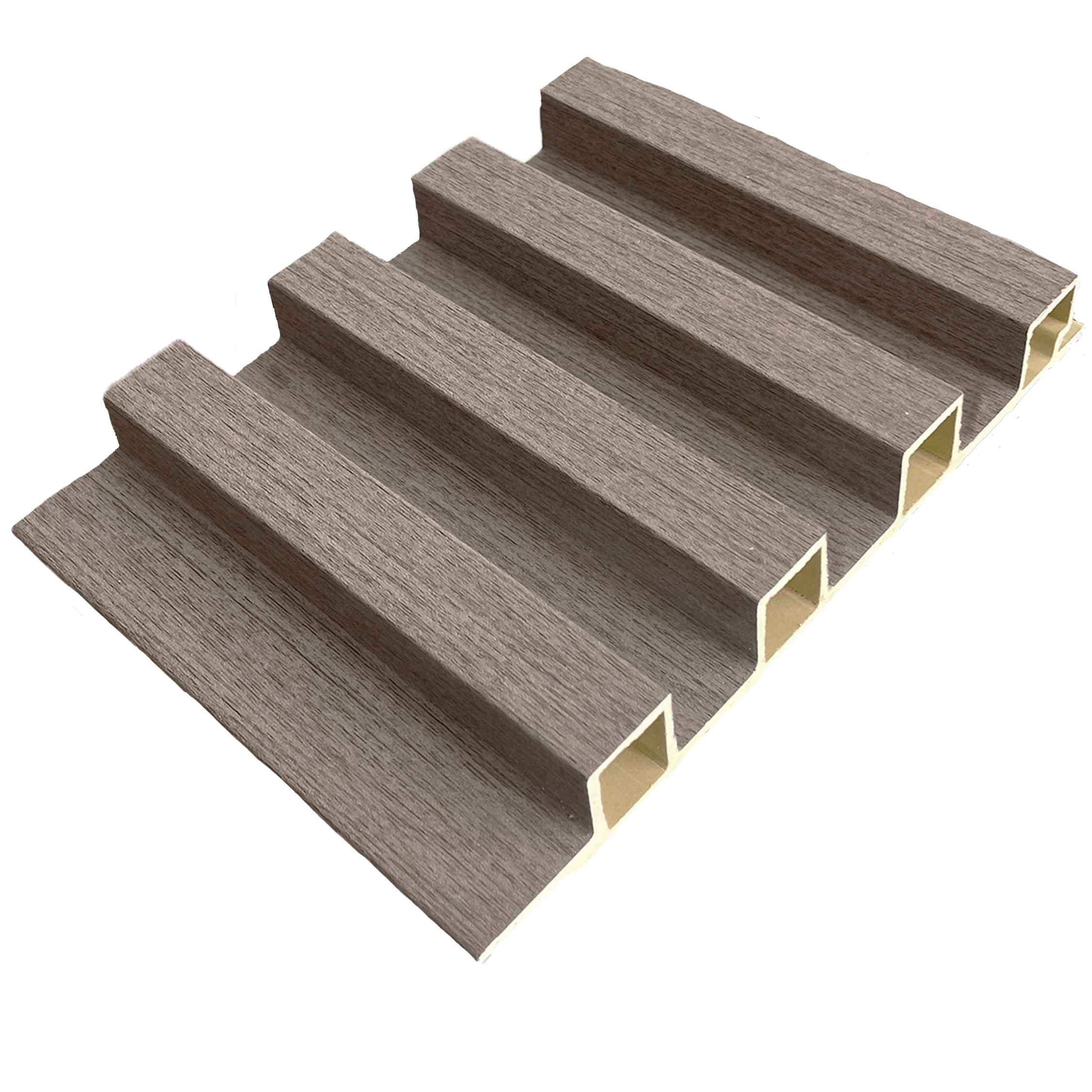 - Material WPC (Wood plastic composite) madera 60% polimeros de plástico reciclados 30%, otros 10%.