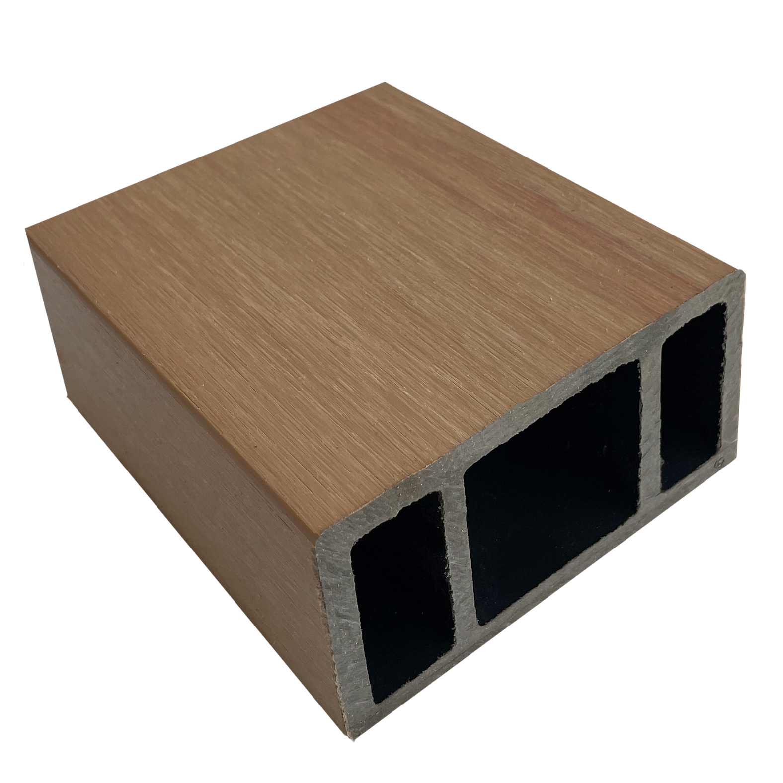 Viga de WPC diseñada para uso exterior, ideal para estructuras decorativas, acabados arquitectónicos y proyectos que requieren resistencia y bajo mantenimiento.